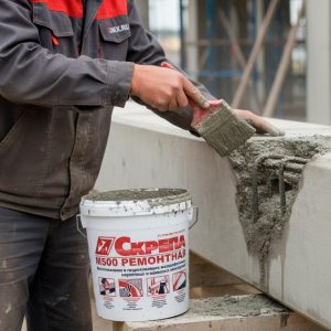 763.00 ₽ Цена за мешок 25 кгРемонтная смесь Скрепа М500 – специальный сухой состав для ремонта и реставрации бетонных поверхностей, включая вертикальные и потолочные покрытия. Перед нанесением необходимо подготовить основание: очистить его от слабого бетона, грязи, пыли, краски или нефтепродуктов.